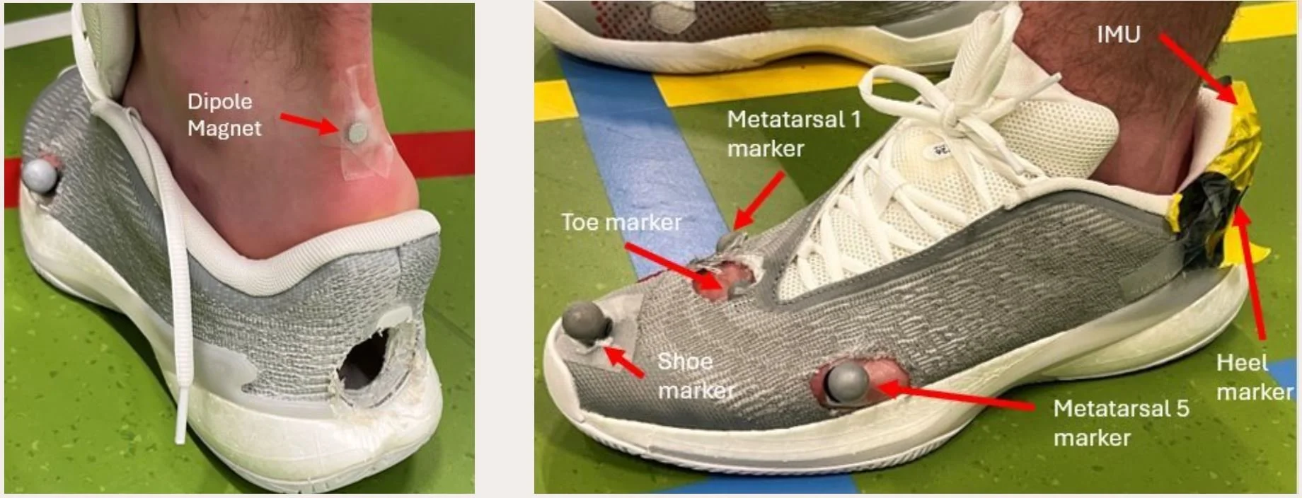 Researchers and footwear brands continue to look for non-destructive ways of measuring foot movement inside a shoe, particularly in tennis, where rapid changes of direction place high demands on foot to shoe interaction. Existing methods such as cutting holes in footwear to accommodate motion capture markers compromise shoe integrity, while externally placed markers or electromagnetic tracking systems can introduce inaccuracies or interfere with natural movement. With recent advances in smartphone magnetometer technology, this project investigated whether magnetometers paired with small neodymium magnets could be used to track in-shoe inversion and eversion during tennis movements without modifying the shoe.